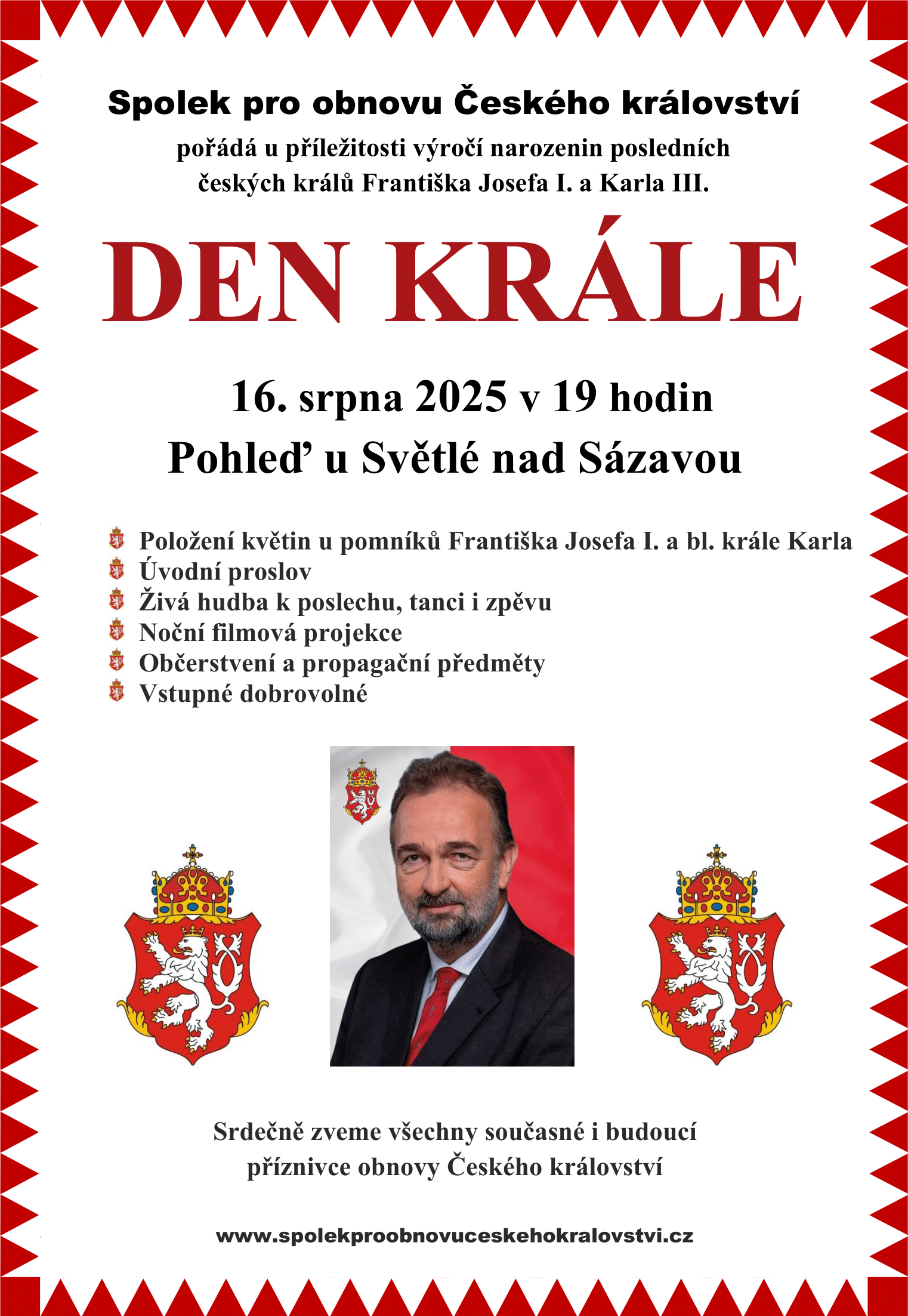 Všichni příznivci a podporovatelé obnovy Českého království jsou srdečně zváni.